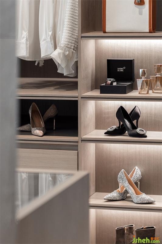 開敞式的衣帽間,女主人喜歡香奈兒的干練隨性,而男主人則欣賞BOSS范兒的整齊筆挺,他在每個紀(jì)念日都會買一塊手表作為紀(jì)念品,記錄那時那刻的感動與生活的模樣。