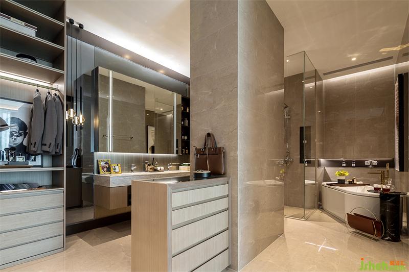 如果說衡量一座城市的標(biāo)準(zhǔn)是看衛(wèi)生間的設(shè)施,那么雙盆,干濕分區(qū)的淋浴間馬桶間,加上別致的落地浴缸,就是這個家最華麗的一筆。華燈初上,褪去浮華,卸去一天的疲憊,泡在浴缸里,呷一口格蘭菲迪,她敷著面膜看著某紅書,他讀著今天沒讀完的報紙,時而撥弄一下新買的香氛。時光荏苒,歲月靜好,這才是生活的樣子。