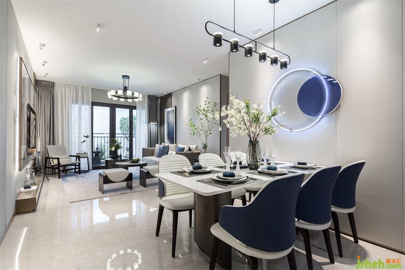 在方正的客廳空間,我們用借景的手法打破對稱,銅川樣板房設計在胡桃木飾面打底的背景墻上懸掛著一幅時光的印記——用水晶馬賽克演繹的檐角片訴說這座城市的過去,又播放著家的未來。邊幾上屹立的吊鐘將家人的優(yōu)雅姿態(tài)詮釋的栩栩如生?;氐郊蚁慈ネ饷媸澜绲泥须s,與家人閑坐,輕松自如,沒有了拘謹和束縛,釋放身心。我把玩新買的小雕塑,你凝望上次生日收的釋迦果。微風襲來,茶幾上的山茶花撒播著沁人心脾的香味,是甜蜜生活最真切的注腳。