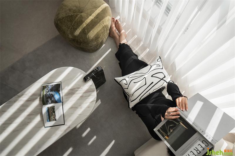 平靜而舒適的生活方式表達(dá)設(shè)計的內(nèi)在靈魂。斑駁的光影隨時間不盡流動,時而腳踏在軟軟的地毯上,時而蜷縮于溫暖的沙發(fā)中,一杯咖啡,一本書籍,生活就這樣慢慢地度過也是極好的享受。