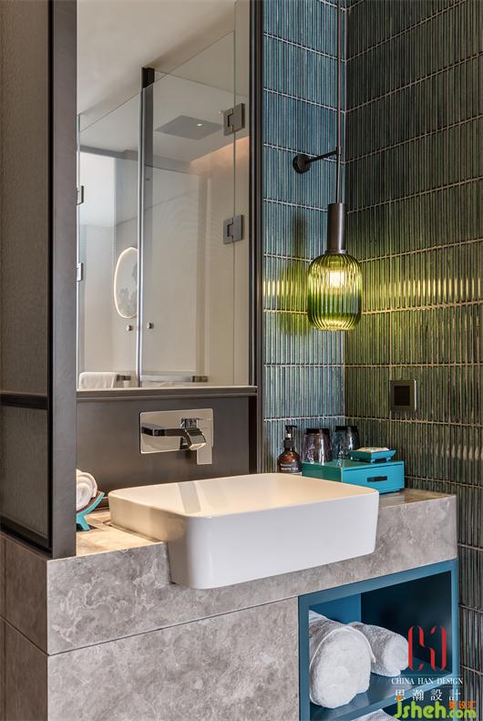 在一樓大堂,碧琉璃元素被繼續(xù)延用,思瀚設(shè)計構(gòu)建起地域與人文之間、現(xiàn)代與傳統(tǒng)之間的生動關(guān)聯(lián),以工藝、材質(zhì)、陳設(shè)、造型及各種現(xiàn)代生產(chǎn)技術(shù)落實,呈現(xiàn)了一個高端精雅且極具人文精神的空間。