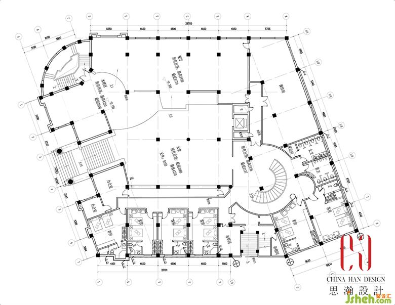 針對原建筑中的6根立柱,設(shè)計師借用墻體進行了包裹處理,只保留了將視線導(dǎo)向前臺的2根立柱。