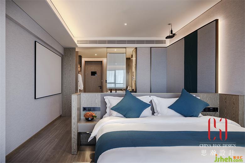 頂層為水系的靛青藍(lán)主題,極簡與奢華彼此跨界,放眼窗外的水天一色,一覽眾山小……