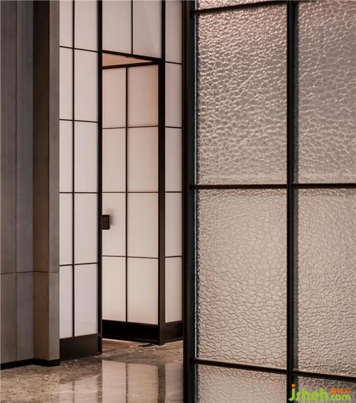 武漢酒店設計塑造出前院迎客的水墨意境。