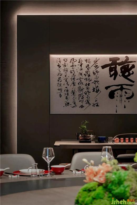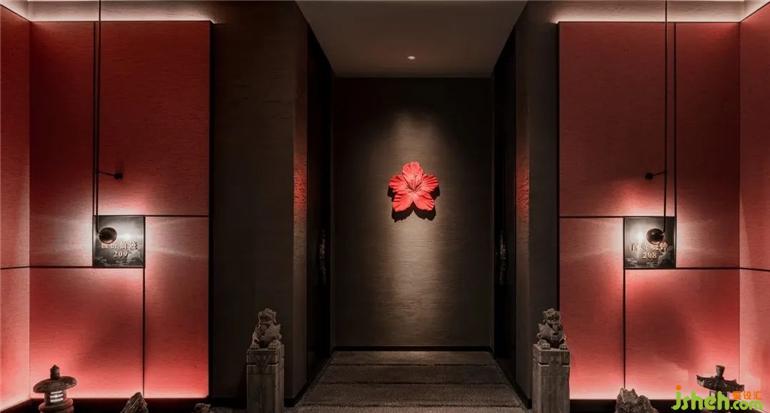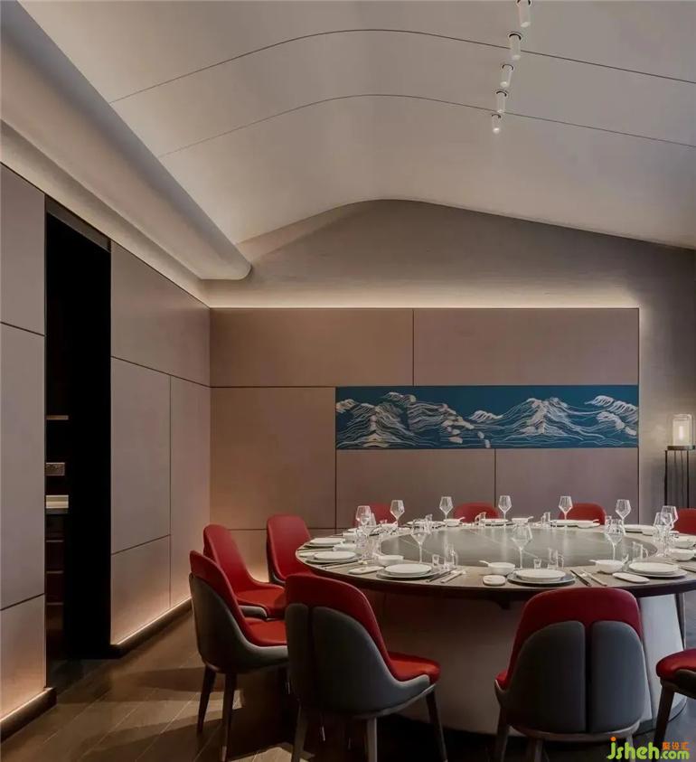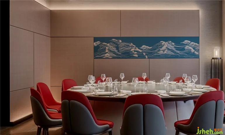 武漢餐廳設(shè)計以東方美學(xué)建構(gòu)的中軸對稱布局,