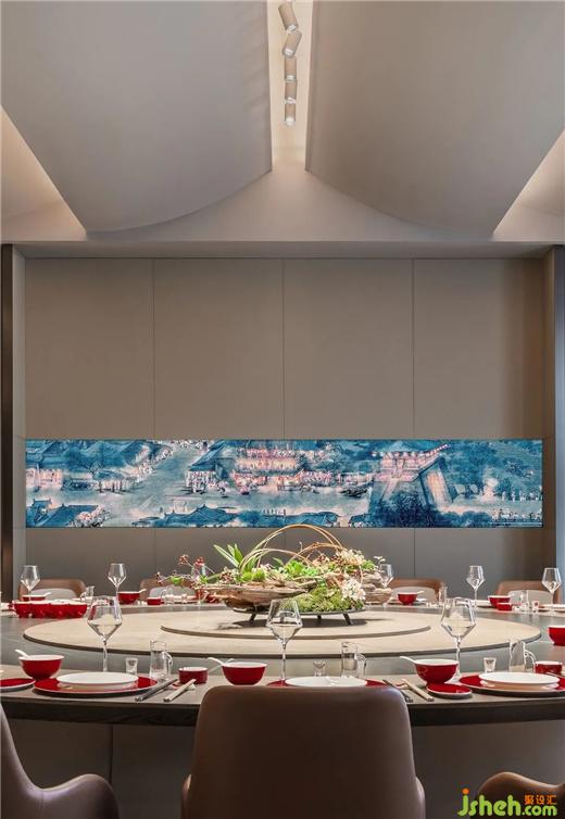 The designer follows the spiritual feeling and displays his love for Oriental culture on the display. Through the contrast of space's emptiness and reality, the whole dining room and the whole space echo each other, which makes people have a strange time and space retrospect of the west and the east.