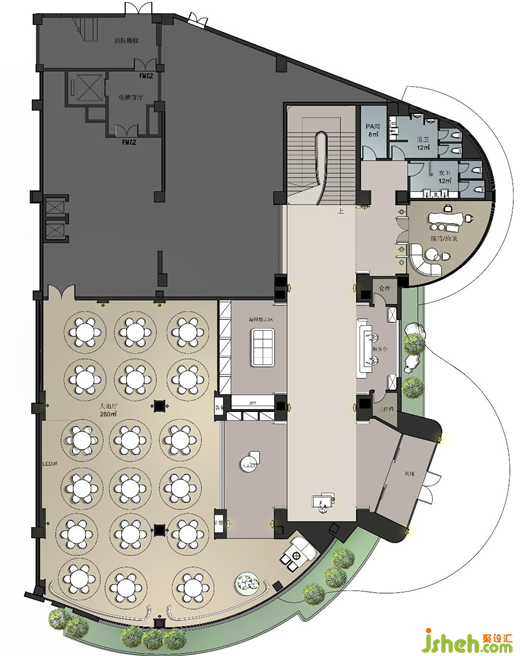 武漢餐廳設(shè)計(jì)柔美曲線的階梯,