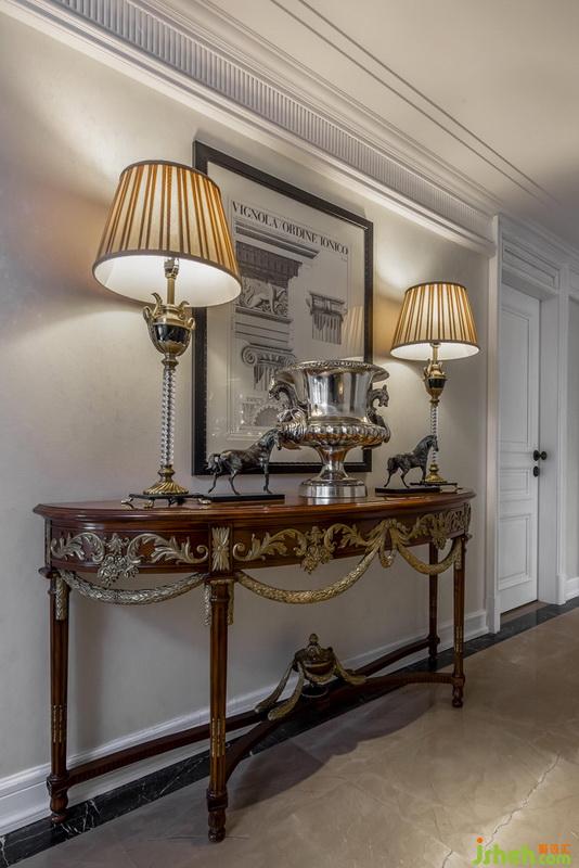 室內(nèi)連廊以藝術(shù)品和畫作精心點綴兩側(cè),營造出多重混合視覺效果,走在每條連廊上,仿佛踏入靜謐、純凈的藝術(shù)空間。沙發(fā)桌選自美克美家的復(fù)興映像系列,具有歷史感的古老柱式結(jié)構(gòu)、希臘建筑中精美絕倫的葉片造型還有象征權(quán)威與力量的獅爪造型,這些經(jīng)典造型的運用生動再現(xiàn)了帝政風(fēng)格的古典與莊嚴(yán)。深厚的歷史底蘊,獨一無二的設(shè)計,頂級的材料和一流的工藝,共同成就了卓爾不群的復(fù)興映象。