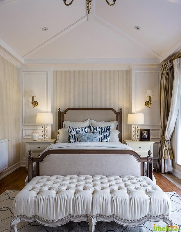 床尾的布藝腳踏,通過簡單優(yōu)美的曲線,營造出優(yōu)雅的室內(nèi)氛圍。通過純手工雕刻和精美的涂飾效果形成空間層次,錯落有致的主題,展現(xiàn)唯美的英式風(fēng)情。