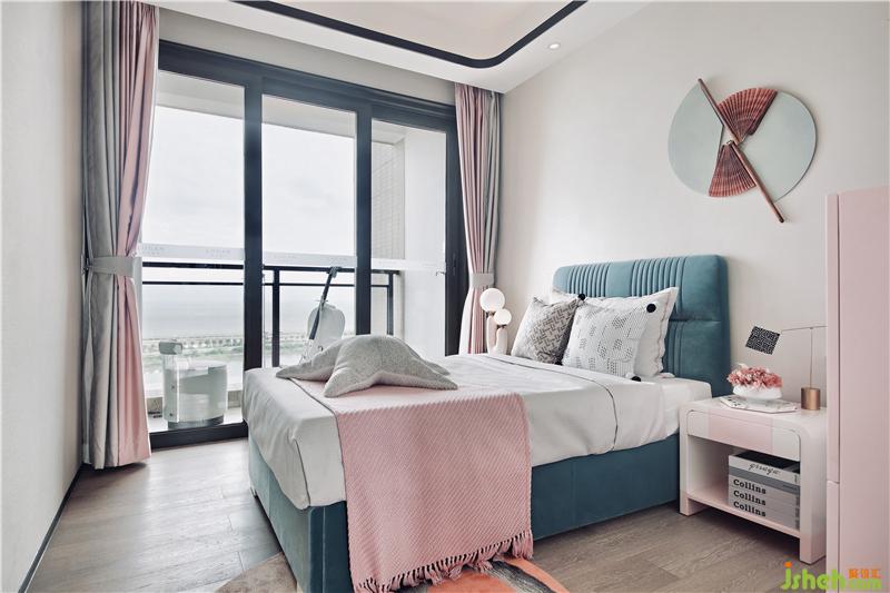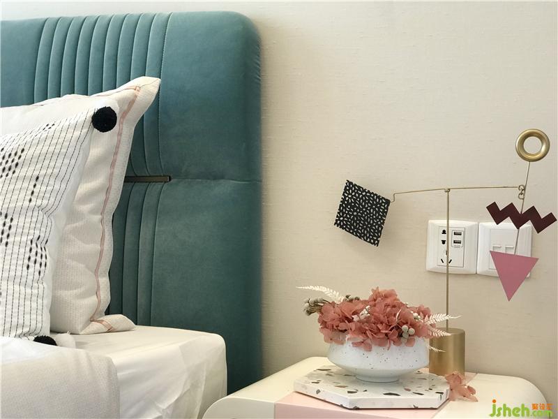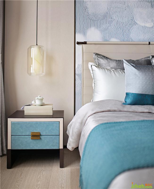 光賦予空間以故事性,在時(shí)間流逝中,歷史的印記被銘刻在這一桌一椅、一花一瓶里。幾只蜻蜓在花影中嬉戲翻飛,環(huán)扣造型的床頭燈仿若扣住時(shí)光的年輪,演繹著一幕幕芳華歲月。樣板房設(shè)計(jì)