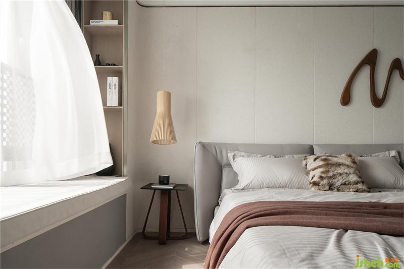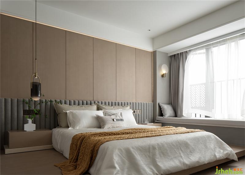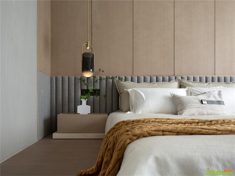木飾面背景板與床頭軟包結(jié)合,搭配榻榻米的設(shè)計(jì),有著厚重的安全感,床頭點(diǎn)綴一抹鮮活的綠植,姜黃色的麥穗紋理搭毯,展現(xiàn)少年的活力。空間透出一種含蓄的低調(diào),視覺上呈現(xiàn)豐富的層次。