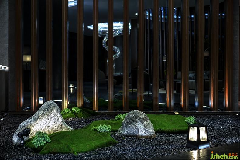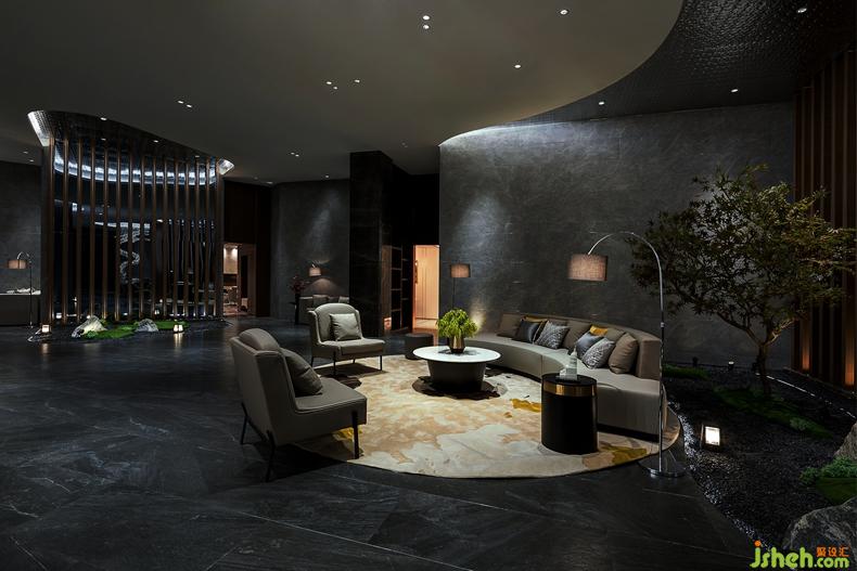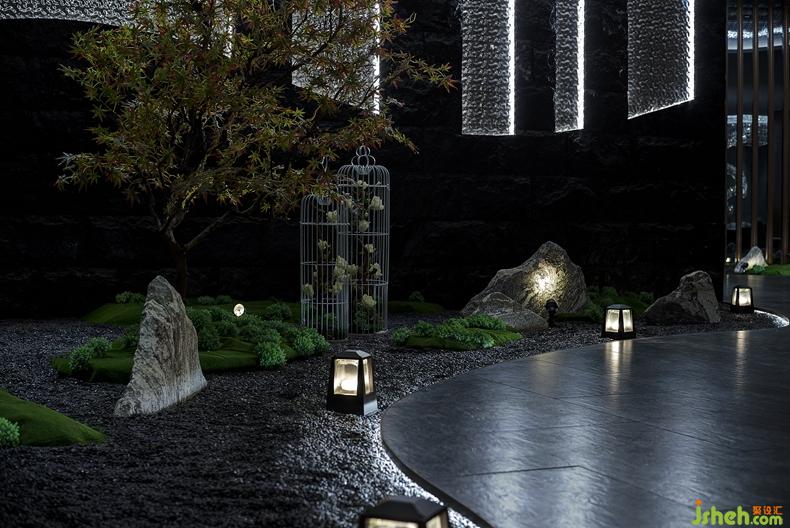 本案設(shè)計(jì)空間為異型,我們大膽突破設(shè)計(jì),以“水曲十八彎”為設(shè)計(jì)理念。并將藝術(shù)化、人性化的室外景觀設(shè)計(jì)引入室內(nèi)環(huán)境設(shè)計(jì)中來,用綠色制造室內(nèi)環(huán)境的園林景觀。裝修設(shè)計(jì)整體空間以弧形延伸,線條柔和且自然。我們大膽用色,墻面大面積灰黑色毛石凹凸不平,更顯原始風(fēng)味。從天花延伸到墻面的波紋不銹鋼,在燈光的照射下,波光粼粼,宛如李白詩中“飛流直下三千尺,疑是銀河落九天”的畫面,予人無限的想象。地面鋪滿黑曜石,挺立的雪浪石,郁郁蔥蔥的樹木,別致的鳥籠,苔蘚點(diǎn)綴,使人恍若生存在室外景觀之中,平添自然韻味。裝修設(shè)計(jì)天花板、墻壁和地面的緊緊相連的設(shè)計(jì),令整個(gè)空間帶來和諧和一體感。