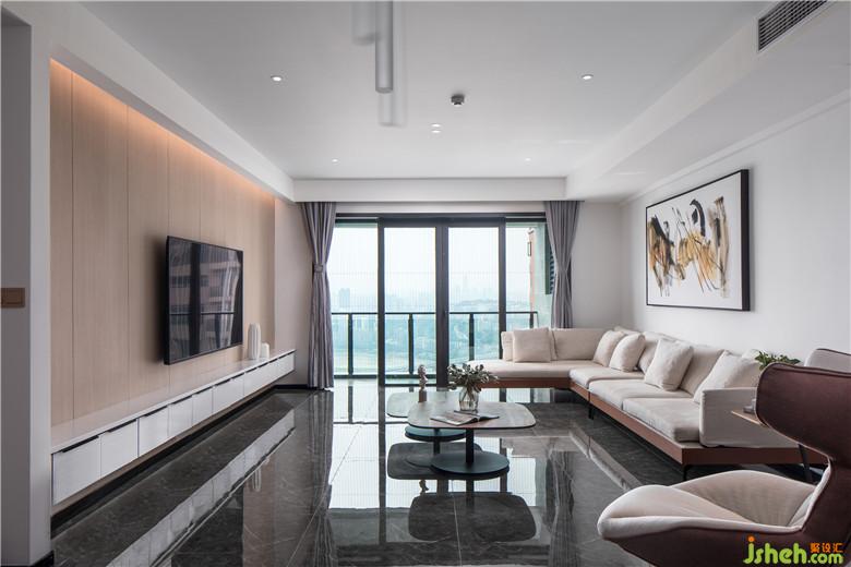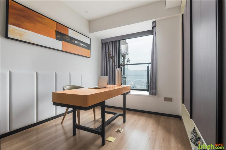 在客廳通往臥室的過道位置室內(nèi)設(shè)計(jì)師將兒童房的門開啟位置調(diào)換了方向,從客廳方向看增加了空間的儀式感。過道書房的一側(cè)增加開門面積,改為玻璃滑門增加了過道的采光。