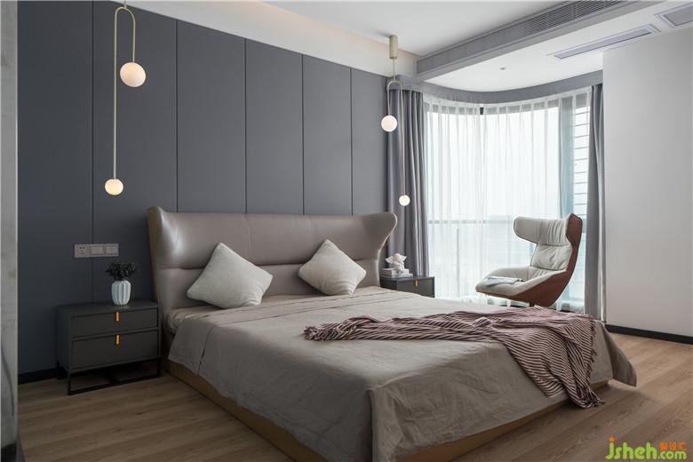 主臥室的將衛(wèi)生間和臥室之間的墻體打掉,室內(nèi)設(shè)計(jì)師采用玻璃墻設(shè)計(jì)增加了空間的通透性和趣味性同時(shí)也將臥室的光線引進(jìn)了衛(wèi)生間增加采光。