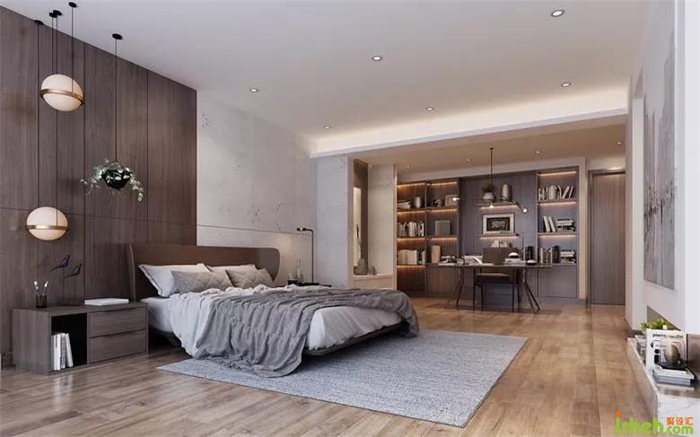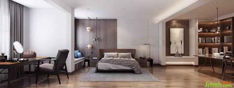 主臥室空間,同時滿足梳妝臺以及辦公的需求,也增加衣帽間以及超大衛(wèi)生間的功能。
