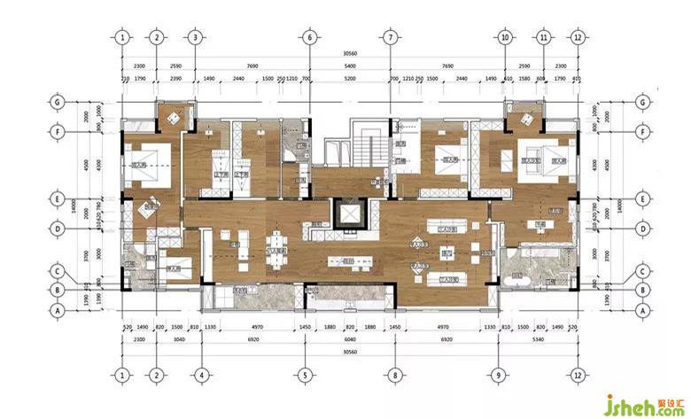 客廳室內設計師將陽臺納入進來,擴大客廳面積,以會客為中心,四周留足活動空間,讓空間之間更加的通透,也增加了整個會客空間的儀式感。