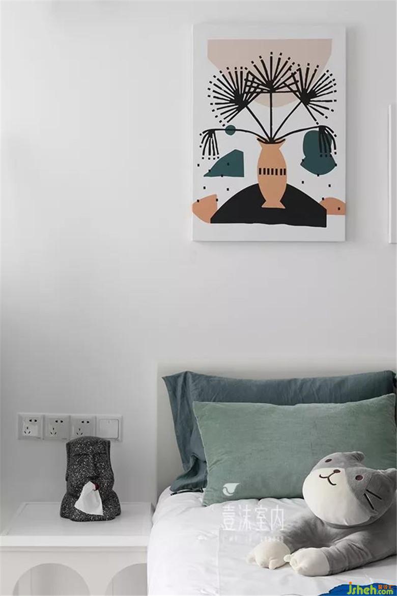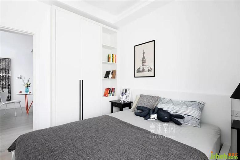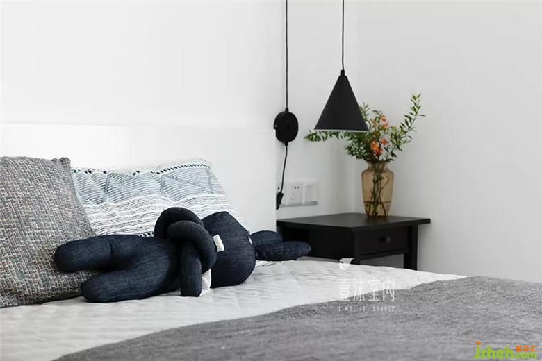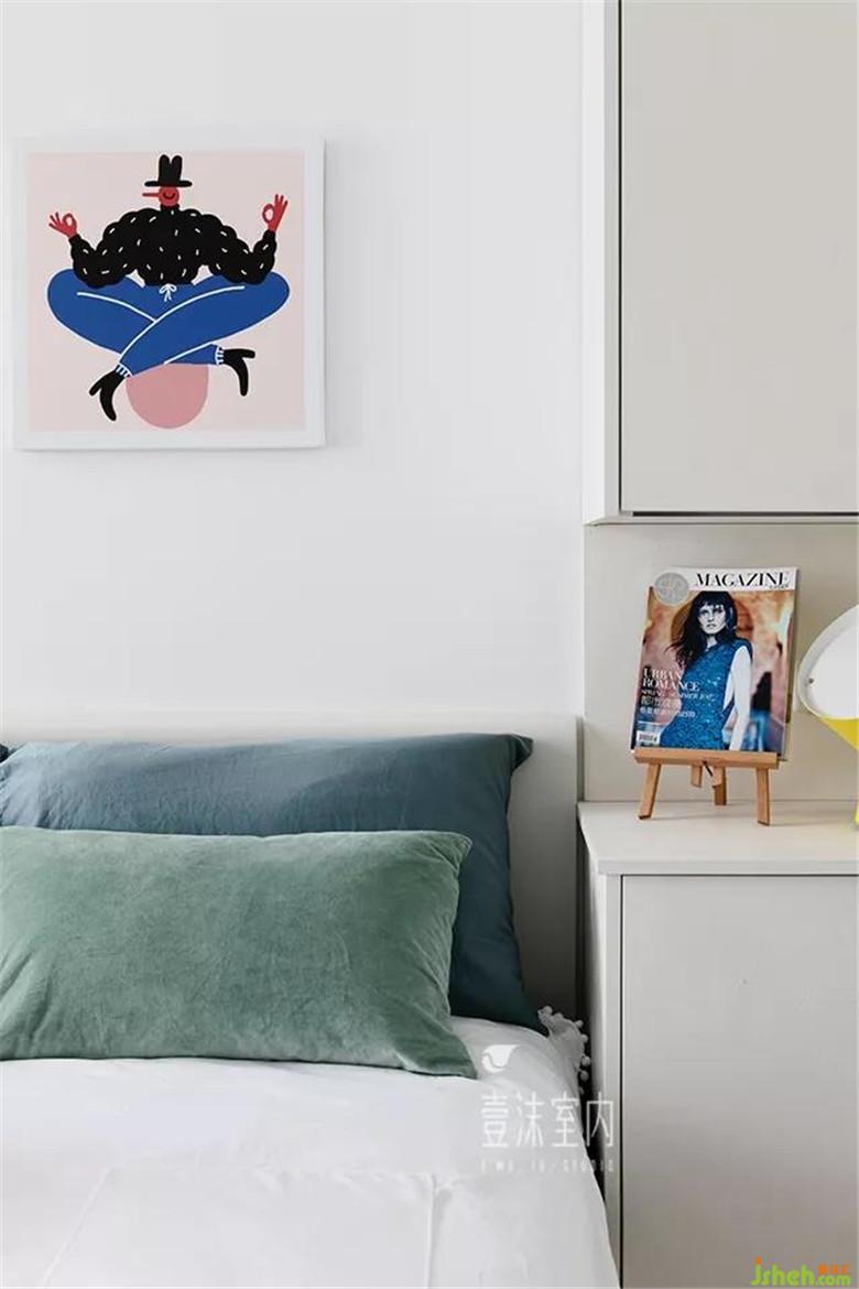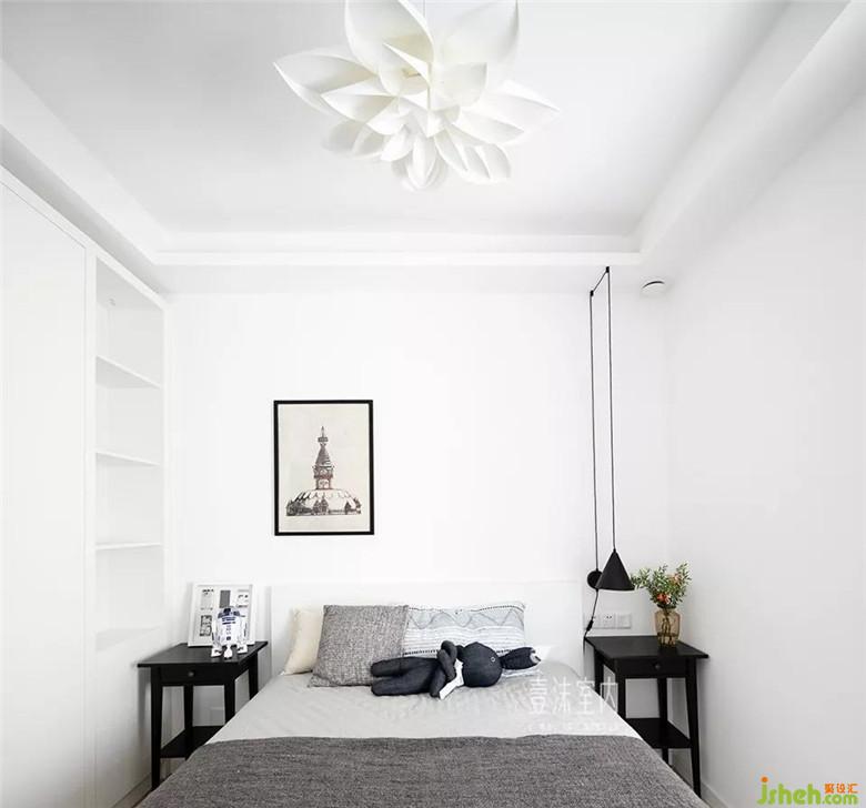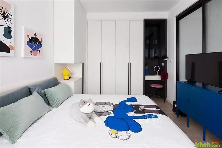 空間相對有限,取消了靠近衣柜的床頭柜,衣柜做了中間懸空設(shè)計(jì),依舊可以有床頭柜的使用屬性。