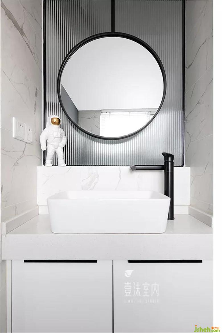 整個(gè)衛(wèi)生間以白色作為基調(diào),用綠植作為點(diǎn)綴,當(dāng)夜光降臨,透過百葉灑下一絲絲的城市霓虹燈,為整個(gè)衛(wèi)生間增添了情趣。