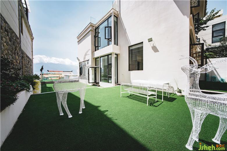 入口的庭院也進(jìn)行了特別的調(diào)整,一塊塊樹立的玻璃結(jié)合色膜,在大理充足光線的映射下,每一個(gè)時(shí)刻,在不同的角度都散發(fā)出完全不同的奪目光彩,當(dāng)你行走在街道上,一片絢麗的色彩一定能夠吸引你的目光,LEVITA STUDIO 的logo在玻璃之上也會(huì)躍然于你的眼簾。