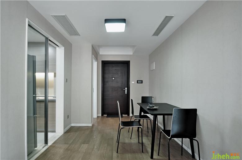 設(shè)計(jì)想法:左邊一側(cè)主要為相對(duì)固定的空間(布局幾乎穩(wěn)定),即衛(wèi)生間、廚房,清潔陽(yáng)臺(tái)、儲(chǔ)藏室、臥室。由于公寓是電梯入戶的,所以右側(cè)從北往南的空間則定義為相對(duì)靈活開敞的空間,從北向的門廳、中間的餐廳、南向的客廳和陽(yáng)臺(tái)都能完全連貫成為一個(gè)大的空間來(lái)滿足不同的功能需求(通過(guò)改變家具布局來(lái)實(shí)現(xiàn)不同功能的切換)。