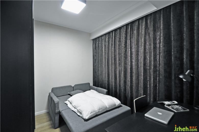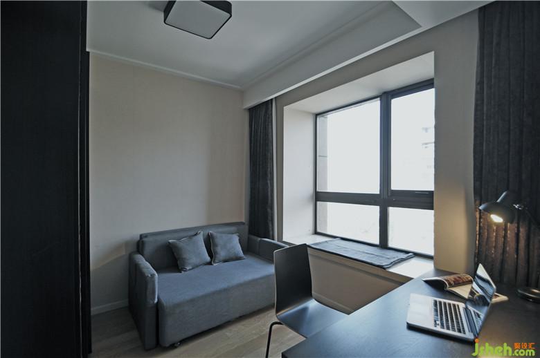 小臥室被用于做書房讓業(yè)主能在相對獨立的環(huán)境中辦公看書。通過書房沙發(fā)床的改變,同樣能夠滿足訪客來訪的居住需求。這樣既避免了床這樣的大家具在小空間中產(chǎn)生的占據(jù)感,同樣增加了空間的多樣性。