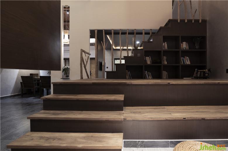 原始建筑5.3m的層高為閣樓的打造提供了一個契機,設計得以超越常規(guī)套房模式的獨有客房布局,形成三種不同高度的空間平臺:一層空間、過渡空間(閱讀區(qū))和閣樓空間,極大地豐富了豎向上的空間體驗,隨著空間標高的增加,私密性逐步增強。每個套間面向的是一個親密的小團體,因此我們希望室內的空間為人與人的交流互動創(chuàng)造平臺與條件。
