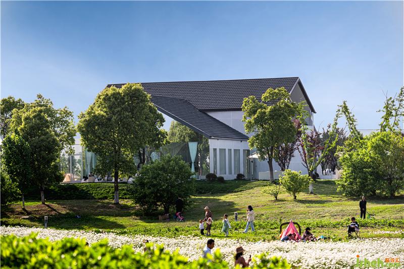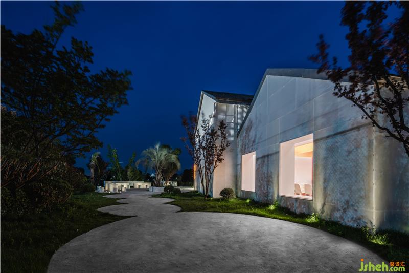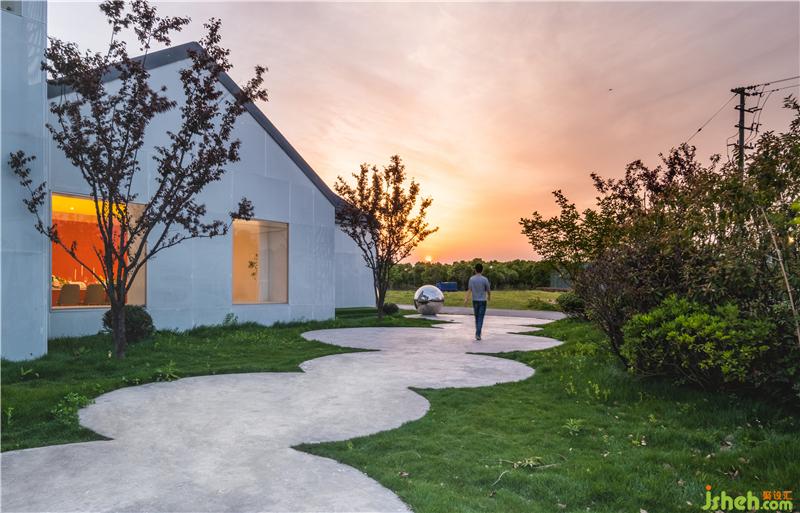 On a sunny day, or when the sun is setting, the single-lens surface glasses make the building shine like a pearl on the grass by the lake, which reflects the sky, clouds, flowers, and pedestrians. At night, the house is lightened, which becomes a unique detached house bar by the lake.