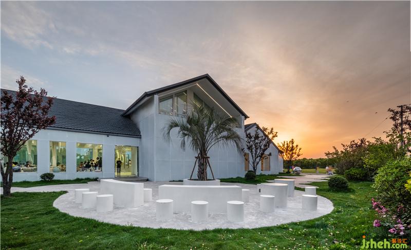 The outdoor courtyard area is integrated into the natural green scene, shaped like the magical brushstrokes falling on the scrolls of the natural park, dizzy and connected. The circular outer pendulum and the bar respond to the site, presenting a picture of natural art, attracting people to stop. In the evening, pearl-like lighting decorates the darkness and brightens the courtyard. Enjoying the night view, people meet here and talk freely.