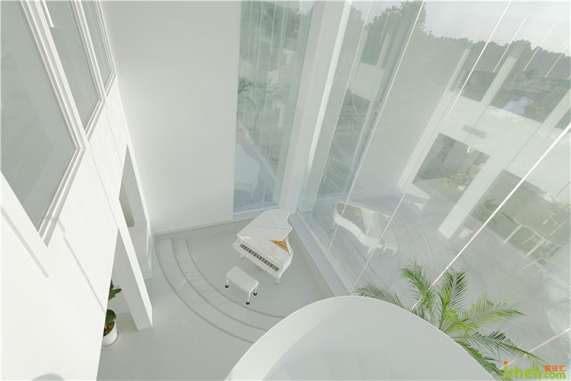 "Architecture is frozen music, and music is fluid architecture." a white-sculpture-feeling piano stands elegantly beside the spiral staircase in the sunken space. The music flowing out from the piano keys is filled with pure space, which attracts you to stop here. In addition, the private rooms of suitable size also provide guests with private area, with excellent quality. The concise line lights on the second floor outline the fully preserved sloping roof shape. The large glass area displays the beautiful scenery outside the window, enhancing the quality of the space.
