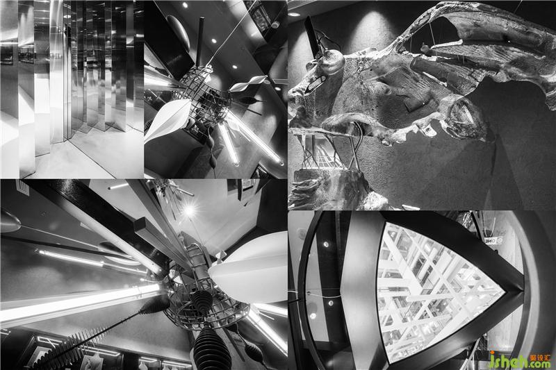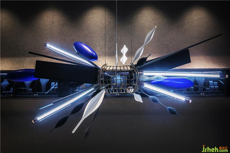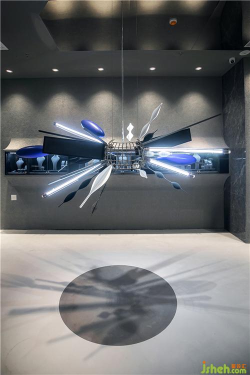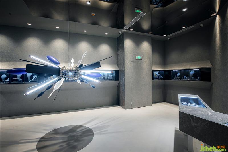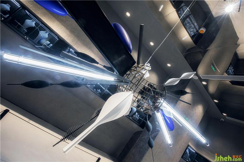 跨越時空的記憶被觸發(fā),平行時空,虛假宇宙,頭腦風(fēng)暴,腦海里重塑著無數(shù)的瞬間。樹枝代表著生命的誕生,燈帶等象征著思維爆炸的動態(tài)過程。武漢店鋪設(shè)計三個橄欖形的裝置為克萊因藍(lán)色,由此可以讓人聯(lián)想到著名的無定向空間“克萊因瓶”,克萊因瓶沒有里外之分,它的表面不會終結(jié),即代表著無限的空間,也象征著珠寶背后無限、沒有終點(diǎn)的愛情。