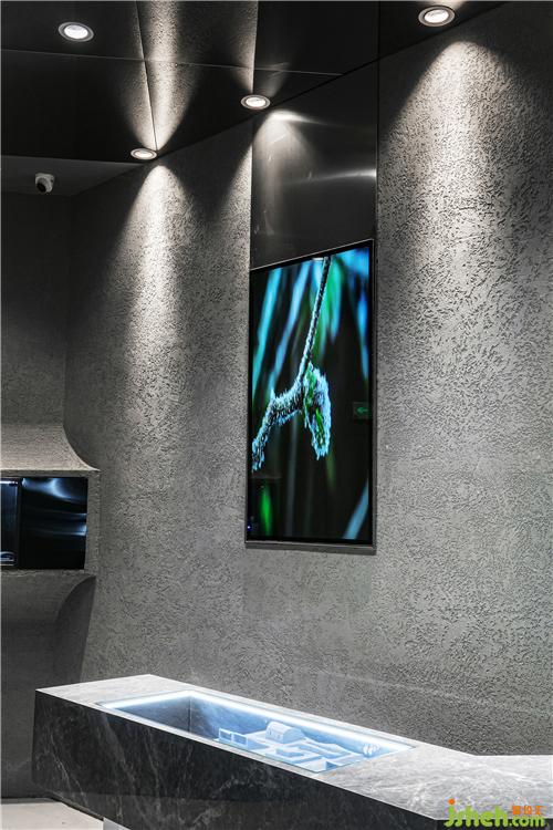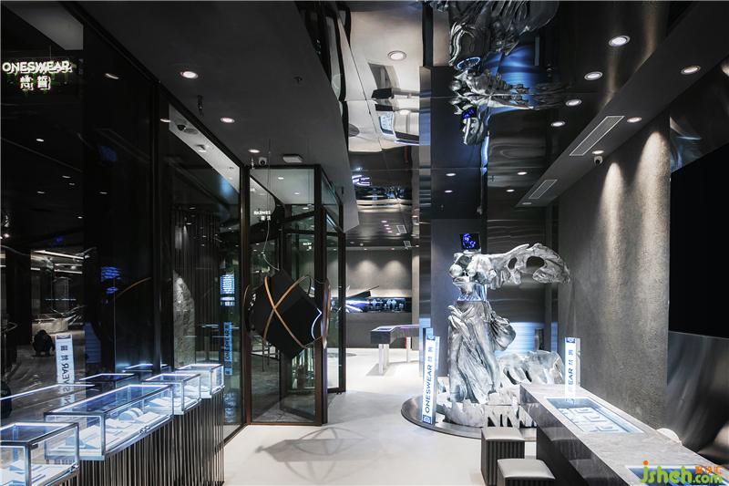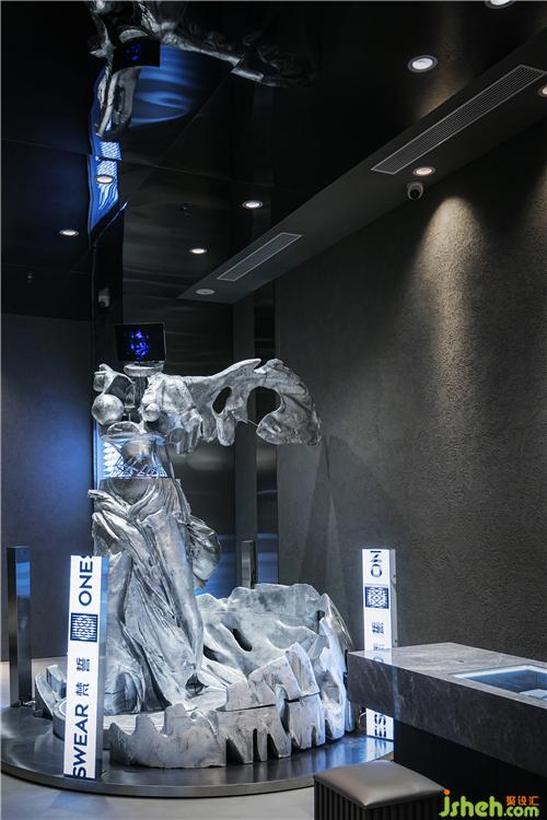 意識是雙向流動的層疊交織,未來和過去的記憶交匯,一些細(xì)碎的過往也許會被遺忘的瞬間重塑拼湊在記憶里。時間發(fā)生逆轉(zhuǎn),意念交織帶來身臨其境的感知,給人一種墜入了新世界的錯覺,同時新世界中還保留著過去舊世界的殘骸。武漢店鋪設(shè)計現(xiàn)代感的電視屏幕象征著未來的新世界,人物雕像象征著舊的世界。設(shè)計師采用燈帶、藝術(shù)人物雕塑和現(xiàn)代感電視等元素編織出豐富的層次。光影流轉(zhuǎn)下,藝術(shù)人物雕像似乎蘊(yùn)藏著回憶地刻痕,現(xiàn)代感的屏幕又詮釋著不被定義的未來。
