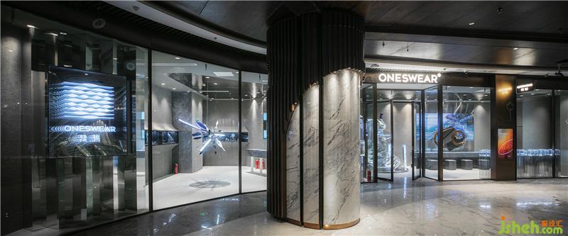 武漢 K11 購物藝術(shù)中心店位于解放大道和武勝路交匯口附近,商場外立面以其曲面造型,呈現(xiàn)一種后現(xiàn)代金屬質(zhì)感與藝術(shù)裝置感。武漢店鋪設(shè)計商場內(nèi)部公共區(qū)采用非線性雕塑造型結(jié)合金屬材質(zhì)。商鋪位置位于商場平面中部通高中庭南側(cè),原始空間為天花吊頂下凈高 4m,開間 20m,進(jìn)深 4-10m 之間的狹長線性空間,空間平面呈現(xiàn)曲折結(jié)合的不規(guī)則輪廓,且整體界面受結(jié)構(gòu)柱體、廣告牌、門頭等影響較大,基于現(xiàn)有的空間條件,設(shè)計師采取化整為零、多點(diǎn)激活的空間布局策略。