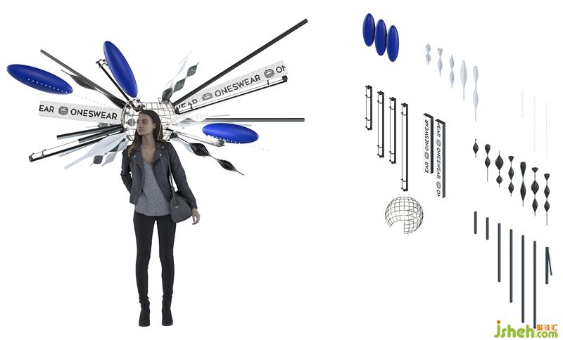 顧客可以站在裝置的中間拍照,向外放射型的裝置象征著思維的爆發(fā),給消費(fèi)者強(qiáng)烈體驗感,引導(dǎo)消費(fèi)者更好地參與到故事中。
