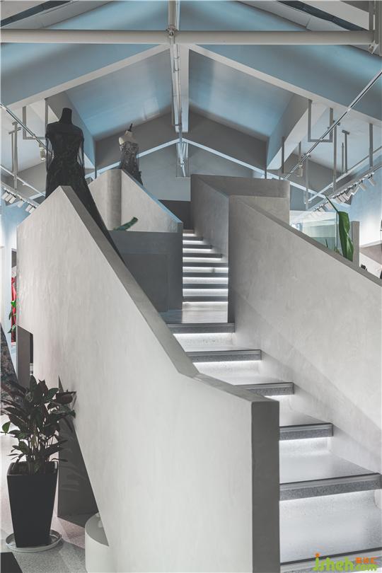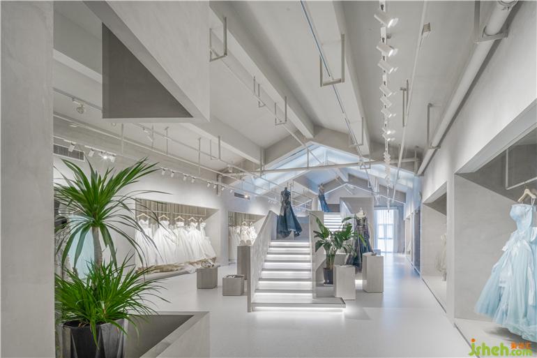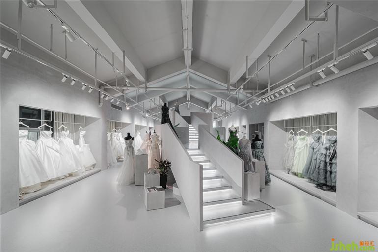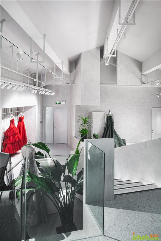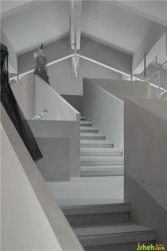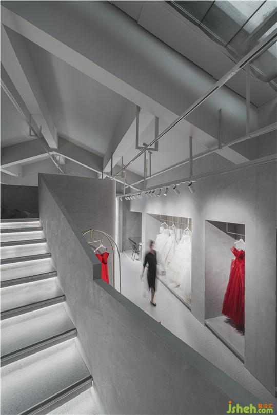通過(guò)樓梯營(yíng)造出不同的高度讓空間形成了視覺(jué)上的互動(dòng),當(dāng)你在尋覓自己的婚紗之時(shí),展廳設(shè)計(jì)也能在此之中看到或許也在尋覓適合自己嫁衣的“她”。