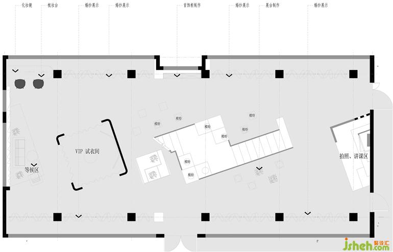 我們需要改造的空間是第三層的辦公與展覽空間的結(jié)合,空間改造的重點(diǎn)及難點(diǎn)正是基于現(xiàn)有空間特質(zhì)難以展示婚紗高檔的質(zhì)感,需要對(duì)空間進(jìn)行重新梳理,讓婚紗的品質(zhì)及試衣的儀式感在此體現(xiàn),將品牌的形象進(jìn)行充分展示,并針對(duì)嫁衣的概念進(jìn)行重新梳理,試圖將“嫁衣”從人生階段的儀式感表達(dá)中轉(zhuǎn)譯到空間之中。
