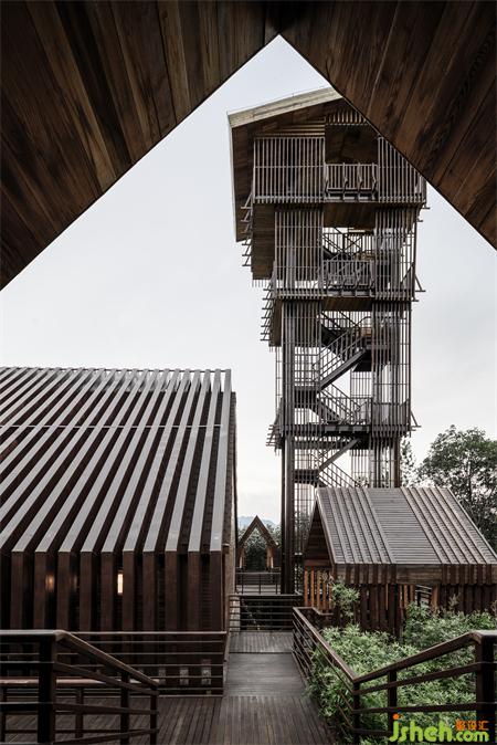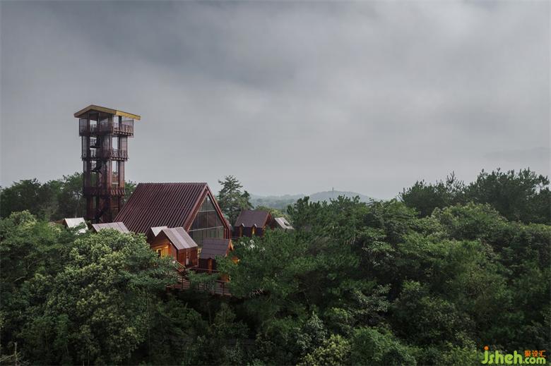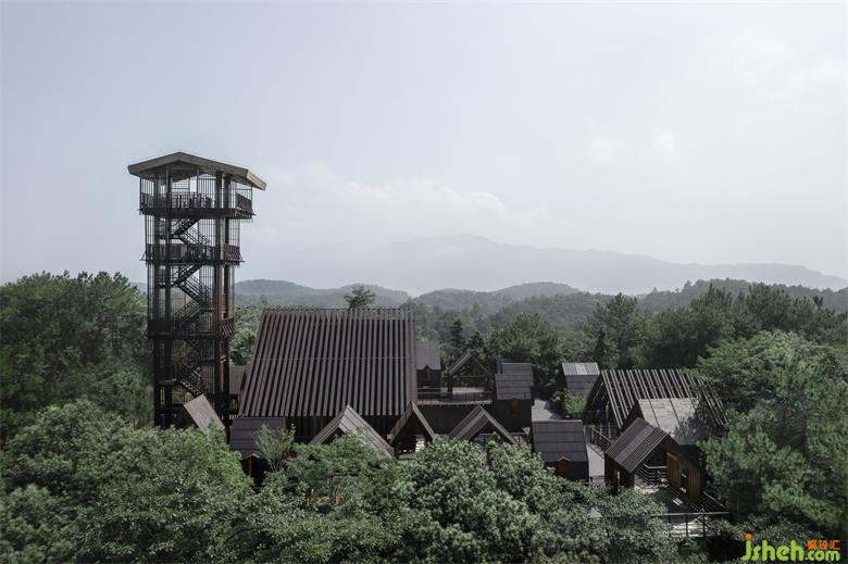 設(shè)計(jì)包含一座24米高的瞭望塔,一個(gè)多功能大廳,以及19個(gè)預(yù)制森林木屋。