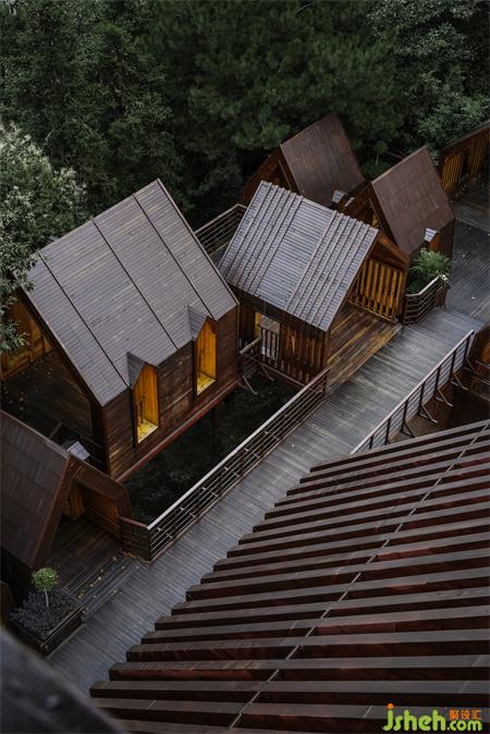 Based on the multiple possibilities in the future, the three types of wooden cabins evolved show different structures, scales, and openness. The "hollow" design also reserves space and structural foundations for later development.