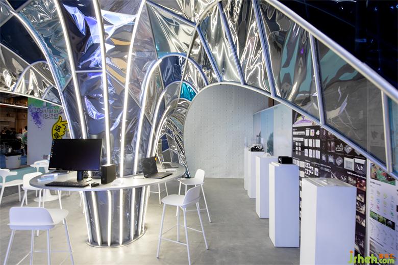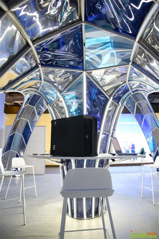設計過程中運用了不同的硬件與軟件配置的戴爾系列產品對展廳設計的不同階段進行展示,包涵前期的概念設計、方案設計與施工建造三個階段,使得計算機充分地介入建筑設計的過程,最高效地提高形態(tài)多樣性、結構和材料合理性與施工便捷性,意在呈現每一款產品在設計過程中的最佳使用性能。