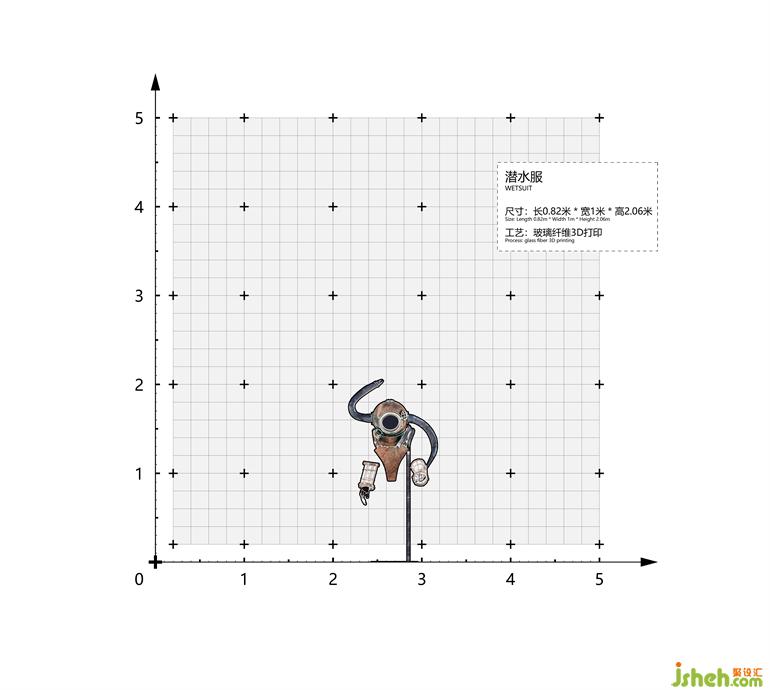 ▼裝置“漫步”:形象參考老式潛水服, Installation "Roam Around" : old wetsuit reference
