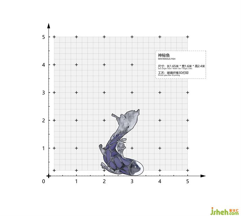 The modeling of the main body was achieved by 3D printing, while the texture was painted manually using metallic paint and color paint. Stainless steel decorations scatter around the installation that simulating the undersea environment.