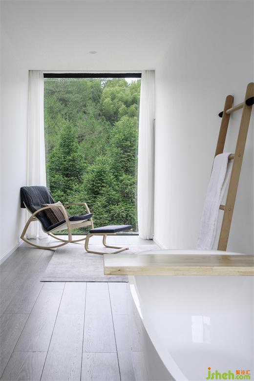 The position, size, and orientation of the windows depend on the scenery in front of them. Each window is a viewfinder, which brings the mountains, water and sky into the room to the greatest extent, and we call this strategy “follow the nature”.