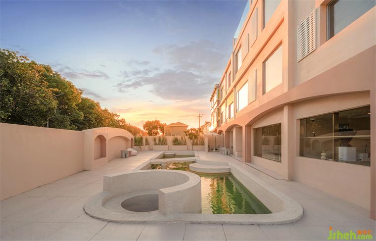 ▼從入口看向南側(cè)泳池黃昏 ©徐英達(dá)