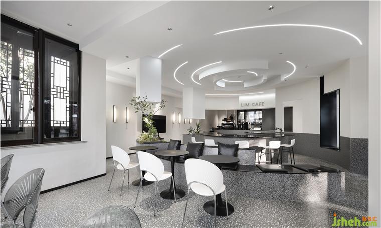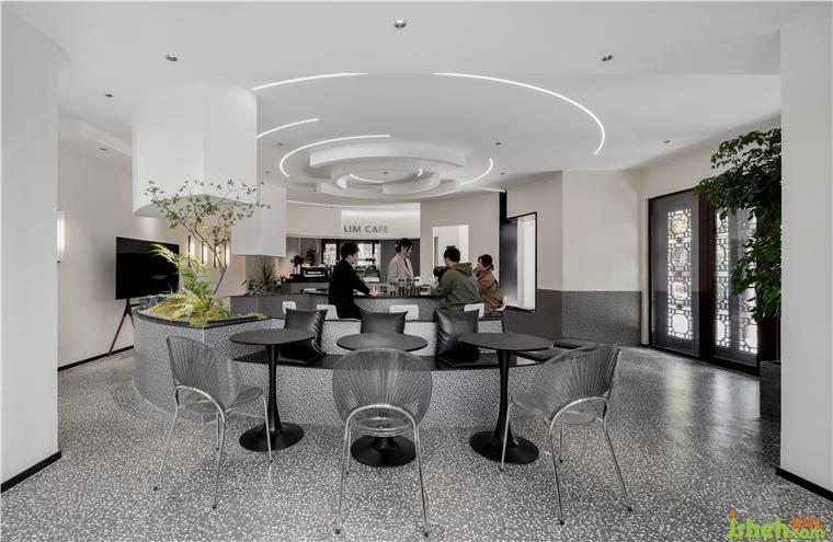 在咖啡培訓(xùn)工坊設(shè)計項目中我們使用深灰色水磨石、黑色石材來營造空間的基調(diào),為了與既有仿古建筑的新蘇式肌理形成對比,最后用到一些綠植來調(diào)和整體黑白灰的色調(diào)。