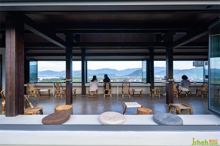 茶室中最引人注目的特點(diǎn)之一,便是朝向四明湖的一整片長條形折疊窗,占據(jù)了整整一面墻壁,猶如一個(gè)獨(dú)特的取景框。茶室設(shè)計(jì)在宜人的天氣里,這橫向折疊窗可以完全敞開,讓客人盡情欣賞美不勝收的景色,隨時(shí)享受微風(fēng)拂面的宜人感覺。