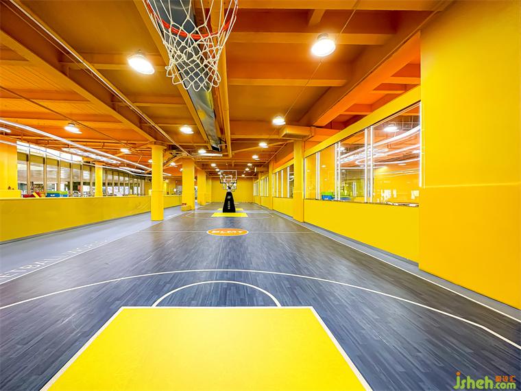 元素體育的彩色海洋,由四塊籃球場,兩個少兒體適能區(qū)域,一個健身中心構(gòu)成,除此之外也包含貴賓室、兒童休息區(qū)、更衣室等輔助功能空間。其中四塊長30米寬17米的標準籃球場,可提供正規(guī)籃球比賽與休閑活動;一塊長24米、寬17米的健身房,雖然面積不大,但足以為兒童提供健身培訓、力量訓練等需求。