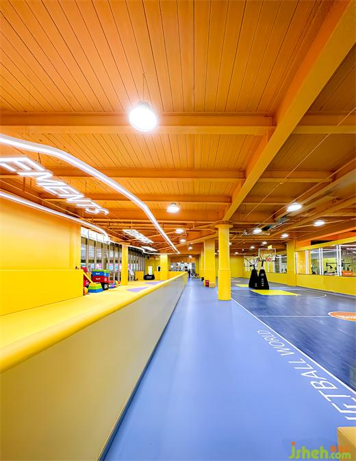 The colorful ocean of Element Sports consists of four basketball courts, two children's fitness areas, and a fitness center. In addition, it also includes auxiliary functional spaces such as VIP rooms, children's rest areas, and locker rooms. Among them, four standard basketball courts with a length of 30 meters and a width of 17 meters can provide regular basketball games and leisure activities; a gymnasium with a length of 24 meters and a width of 17 meters, although not large, is enough to provide children with fitness training, strength training, etc. need.