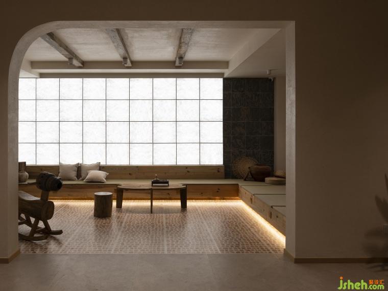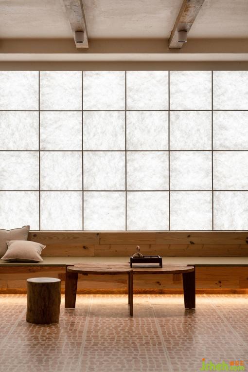 古人和今天涇縣的匠人更善于將花磚運用在徽派建筑的外表面上,而在這個設計中,我們嘗試將它與長虹玻璃、杜邦紙等現(xiàn)代材料工藝結(jié)合,讓其融入室內(nèi),形成“水墨”與“宣紙”的對話,使空間既具有中國傳統(tǒng)山水畫的詩意韻味,又具有現(xiàn)代抽象派藝術(shù)的氣質(zhì)。