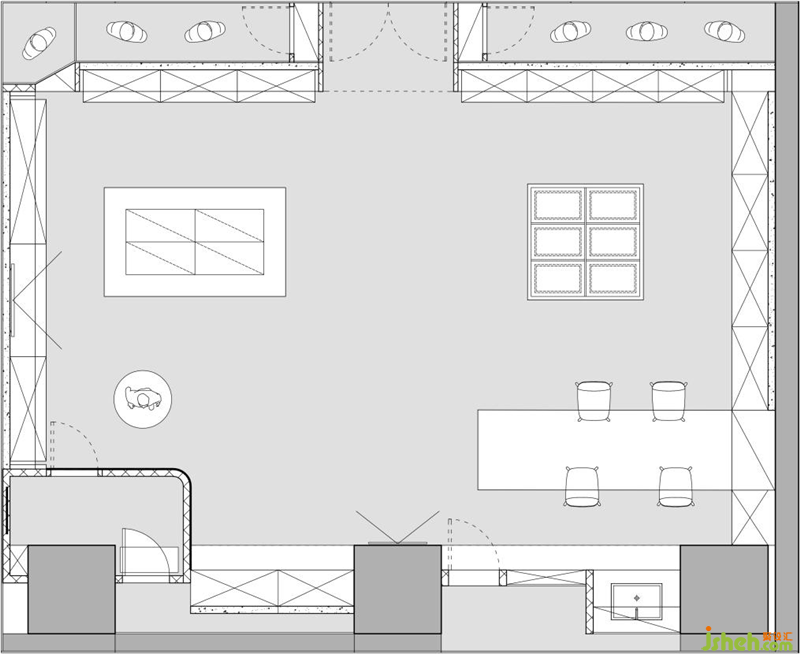 整個(gè)空間,我們沒有去設(shè)計(jì)沙發(fā)軟座,而是把擺臺(tái)作為交流島的方式使用,一方面是因?yàn)榭臻g的局促性,另一方面,南京店鋪裝修設(shè)計(jì)師需要在這90平米的空間里,可以滿足三組客人停留并選樣。所以我們?cè)O(shè)定了三個(gè)接待區(qū),即服務(wù)臺(tái)和兩個(gè)展品島。