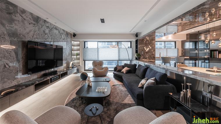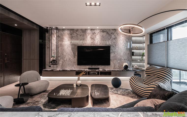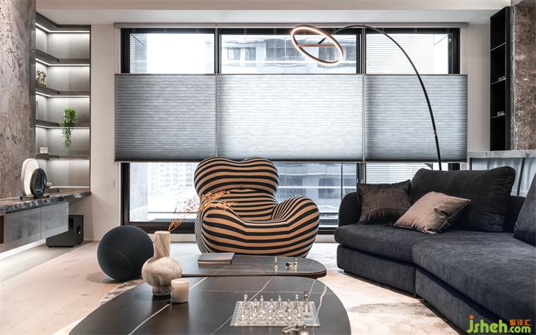 此案坐落于臺灣臺中市,復(fù)式設(shè)計將建筑環(huán)伺公園綠地的風(fēng)景轉(zhuǎn)載,成為使用材料、動線安排、室內(nèi)設(shè)計的構(gòu)組元素。