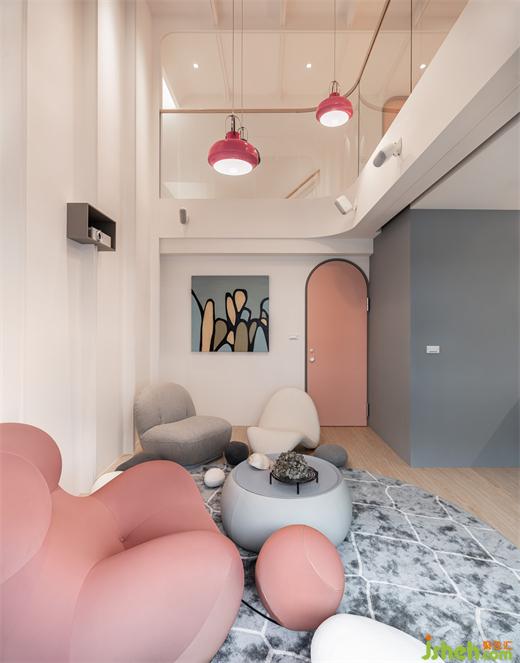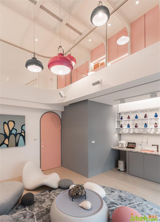 復式裝修設計,不斷地與當代元素、生活脈動相碰撞,記錄著與人、自身與他人當下的動態(tài)。「當屋主抱著孩子、孩子手握五彩繽紛的棒棒糖,甜膩滋味、滿滿笑容,讓人沉溺在幸福時光里…。于是“繽紛甜蜜”遂成為此案的設計主軸?!?